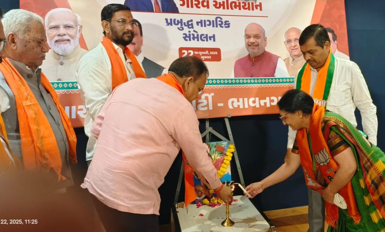 સંવિધાન ગૌરવ અભિયાન અંતર્ગત જીલ્લા ભાજપા દ્વારા તા.22/01/2025, મેઘાણી ઓડિટોરિયમ ખાતે પ્રદેશ ભાજપા મંત્રીશ્રી રઘુભાઈ હુંબલની વિશેષ ઉપસ્થિતિમાં ભાજપા પ્રદેશ અગ્રણી શ્રીમતી પલ્લવીબેન ઠાકર દ્વારા જીલ્લા ભાજપા અપેક્ષિત આગેવાનો, તાલુકા મંડલને સંબોધન કર્યું.