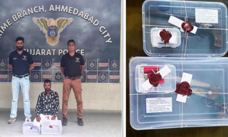 અમદાવાદ શહેરની ક્રાઇમ બ્રાન્ચે આજે ગેરકાયદેસર હથિયારોની શોધખોળ દરમિયાન મહત્વપૂર્ણ સફળતા મળી છે. ઘણા ગંભીર ગુનાઓમાં સંડોવાયેલા એક કુખ્યાત આરોપીને હથિયારો સાથે ઝડપવામાં આવ્યો છે.