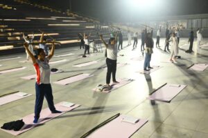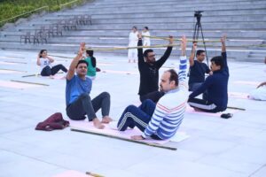 આશ્રમના પરિસરમાં વહેલી સવારે યોજાયેલા યોગસત્રમાં વરિષ્ઠ અધિકારીઓએ સક્રિય હાજરી આપી હતી અને શ્રીમદ રાજચંદ્રજીની વિશાળ પ્રતિમાના સાનિધ્યમાં સામૂહિક યોગાભ્યાસ કર્યો હતો। શાંત અને સકારાત્મક વાતાવરણ વચ્ચે અધિકારીઓએ દિવસની શરૂઆત આરોગ્યપ્રદ અને ઊર્જાસભર રીતે કરી।