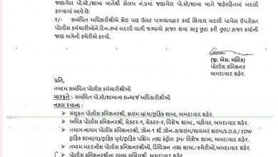 અમદાવાદ શહેર પોલીસ કમિશ્નર દ્વારા 1543 પોલીસ કર્મીઓની આંતરિક બદલી કરવામાં આવી. છેલ્લા પાંચ વર્ષથી એક જ જગ્યા પર…