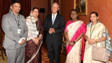 ભારતની માનનીય રાષ્ટ્રપતિ શ્રીમતી દ્રૌપદી મુર્મુજી સાથે કેન્દ્રીય રાજ્ય મંત્રી શ્રીમતી નિમુબેન બાંભણિયાજી, શ્રીમતી સંધ્યા રાયજી અને શ્રી ધવલ પટેલજીએ પોર્ટુગલના રાષ્ટ્રપતિ મહામહિમ માર્કેલો રેબેલો દ સોઝા સાથે મુલાકાત કરી ભારત-પોર્ટુગલ દ્વિપક્ષીય વાર્તાલાપમાં ભાગ લીધો।